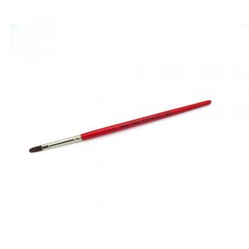 Katzenzunge oval, vernickelte Messingzwinge, roter Pinselstiel.